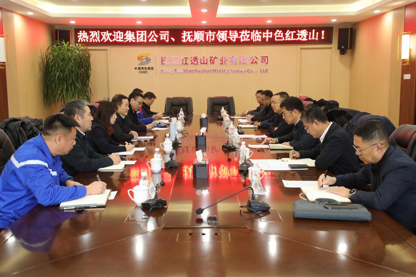 12月4日,中国有色集团党委书记、董事长文岗在中色红透山会见了抚顺市委副书记、市长王庆海,抚顺市副市长王进一行,双方就深化地企合作、携手推动高质量发展开展深入交流。