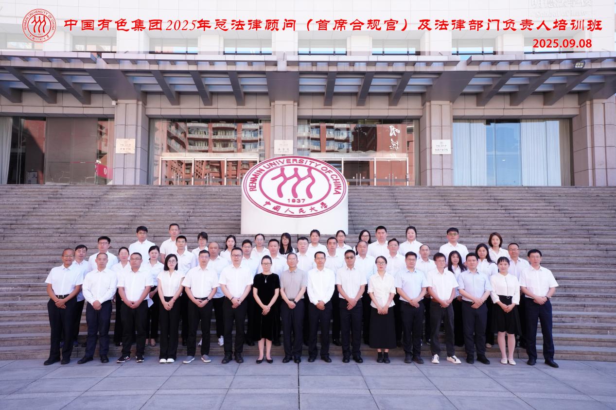 9月8日,中国有色集团2025年总法律顾问(首席合规官)及法律部门负责人培训班在中国人民大学正式开班。中国人民大学法学院党委书记沃晓静出席并致辞。集团公司党委副书记、总经理张晋军出席开班仪式并讲话。