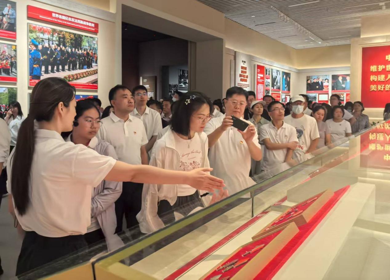 本次主题展以大量珍贵的历史图片、实物展品、文献资料和现代技术,全面再现了在中国共产党领导下,全国各族人民以铮铮铁骨战来犯之敌、以血肉之躯筑钢铁长城,历经艰苦卓绝的浴血奋战,最终全面取得抗日战争伟大胜利的壮阔历史画卷。参观过程中,大家认真聆听讲解,不时驻足凝视切身感受到在民族存亡的危急关头革命先烈视死如归、血战到底的英雄气概,被中华民族百折不挠、勇毅前行的必胜信念深深震撼也更加深刻感受到今天和平生活的来之不易,必须倍加珍惜、倍加努力