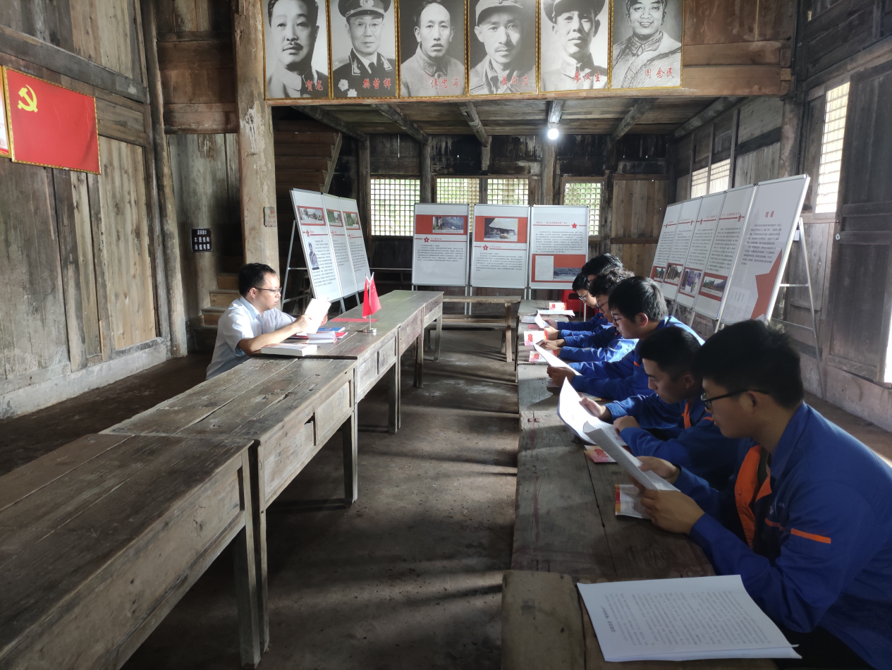 中色十五冶武汉公司项目党支部书记在红色教育基地为支部党员讲党课,号召党员干部传承发扬红色基因。