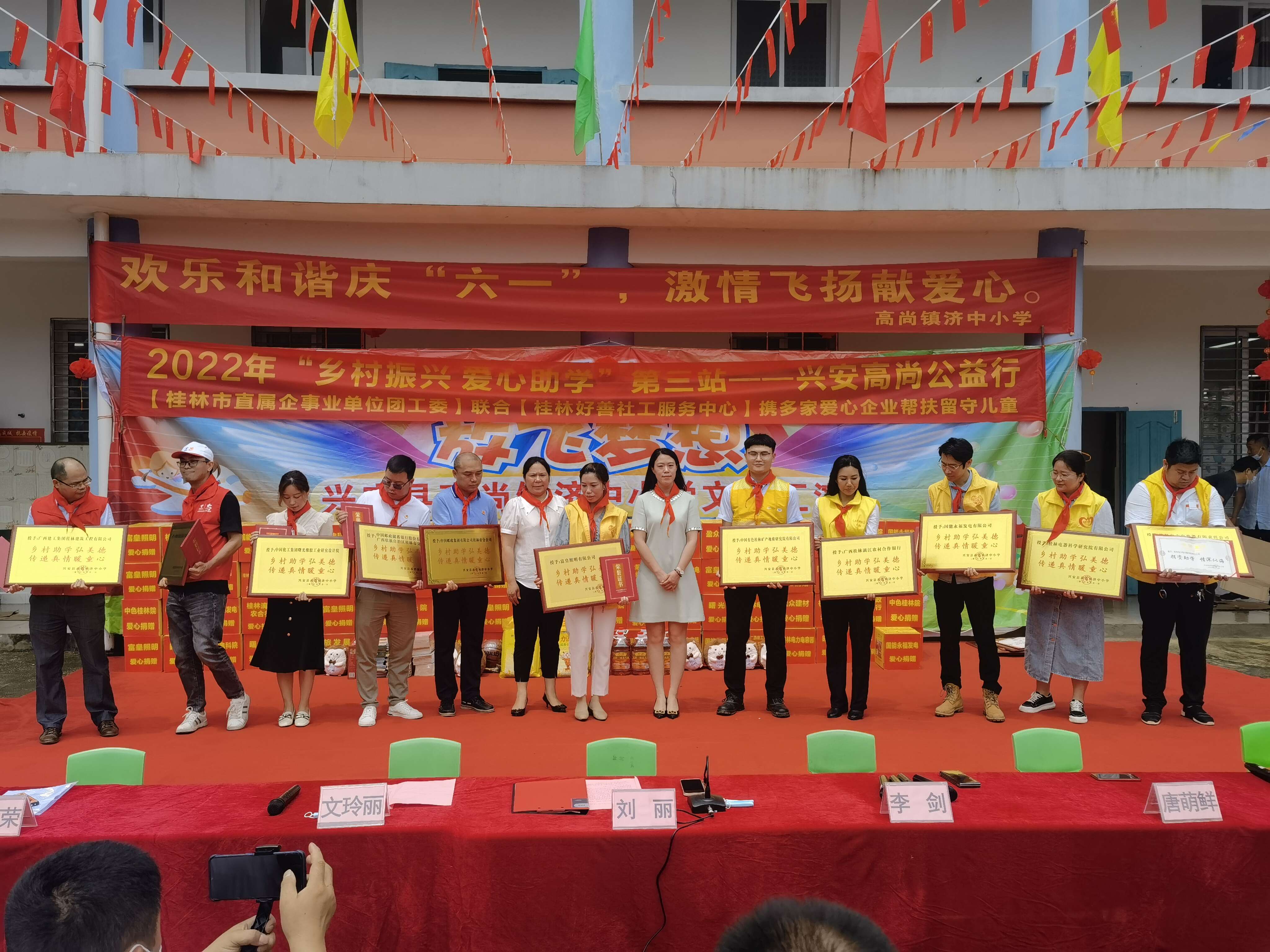 6月1日,正值六一儿童节之际,公司团委代表到兴安高尚镇参加由桂林市企事业单位团工委组织的济中小学爱心书包捐赠活动。