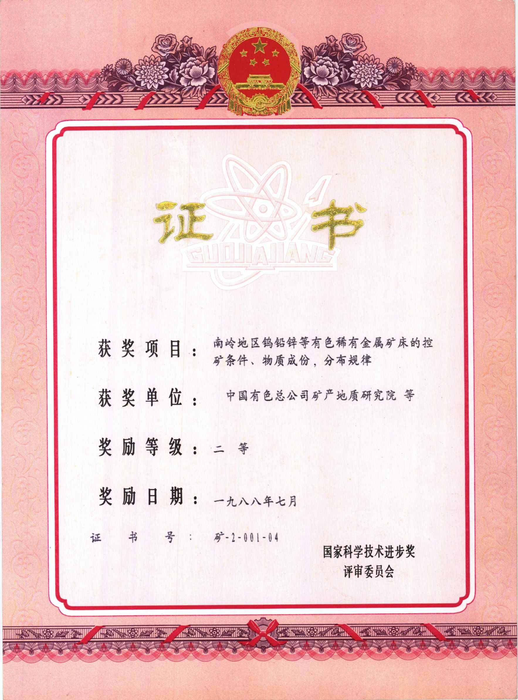 国家科技进步二等奖