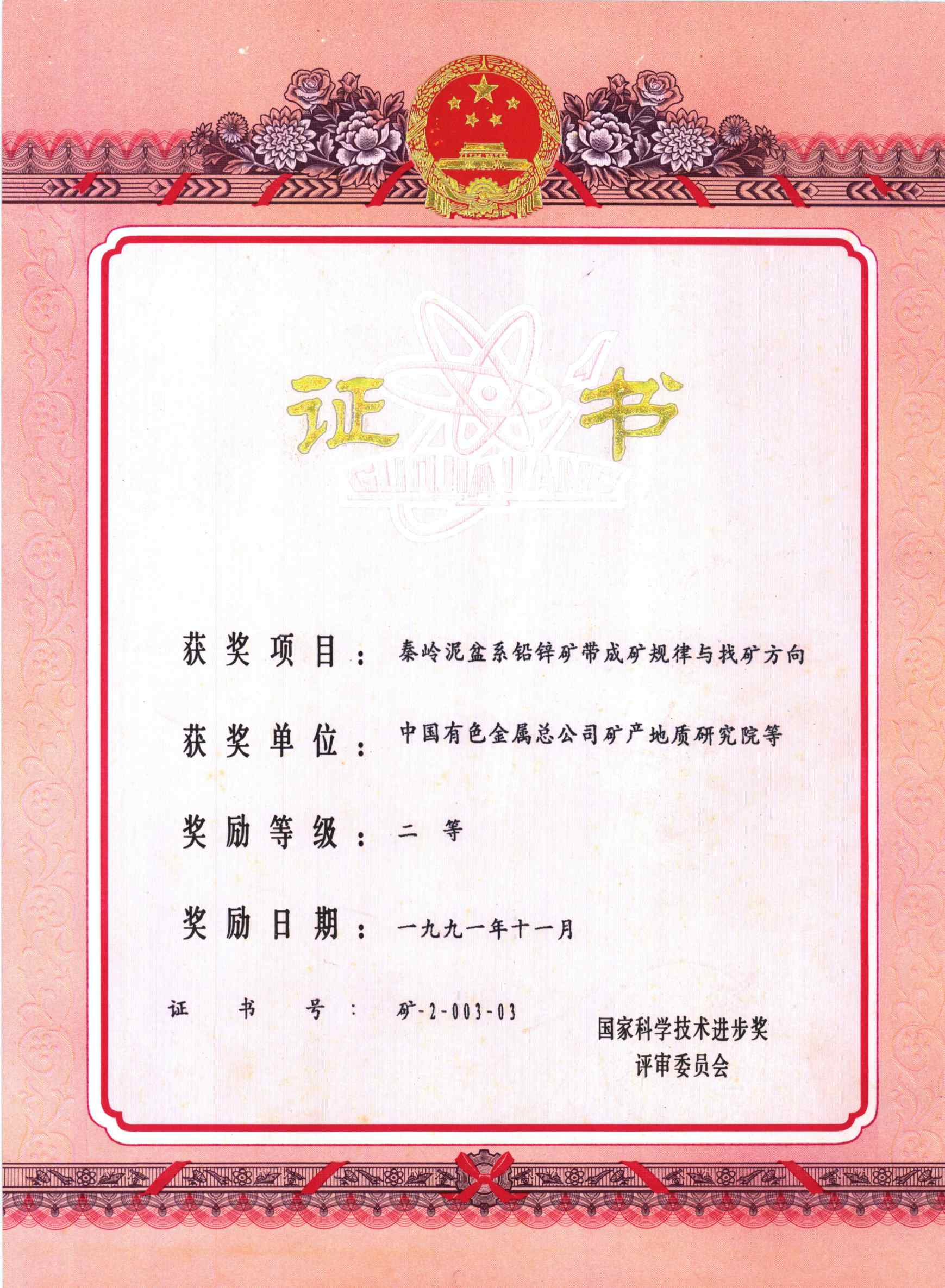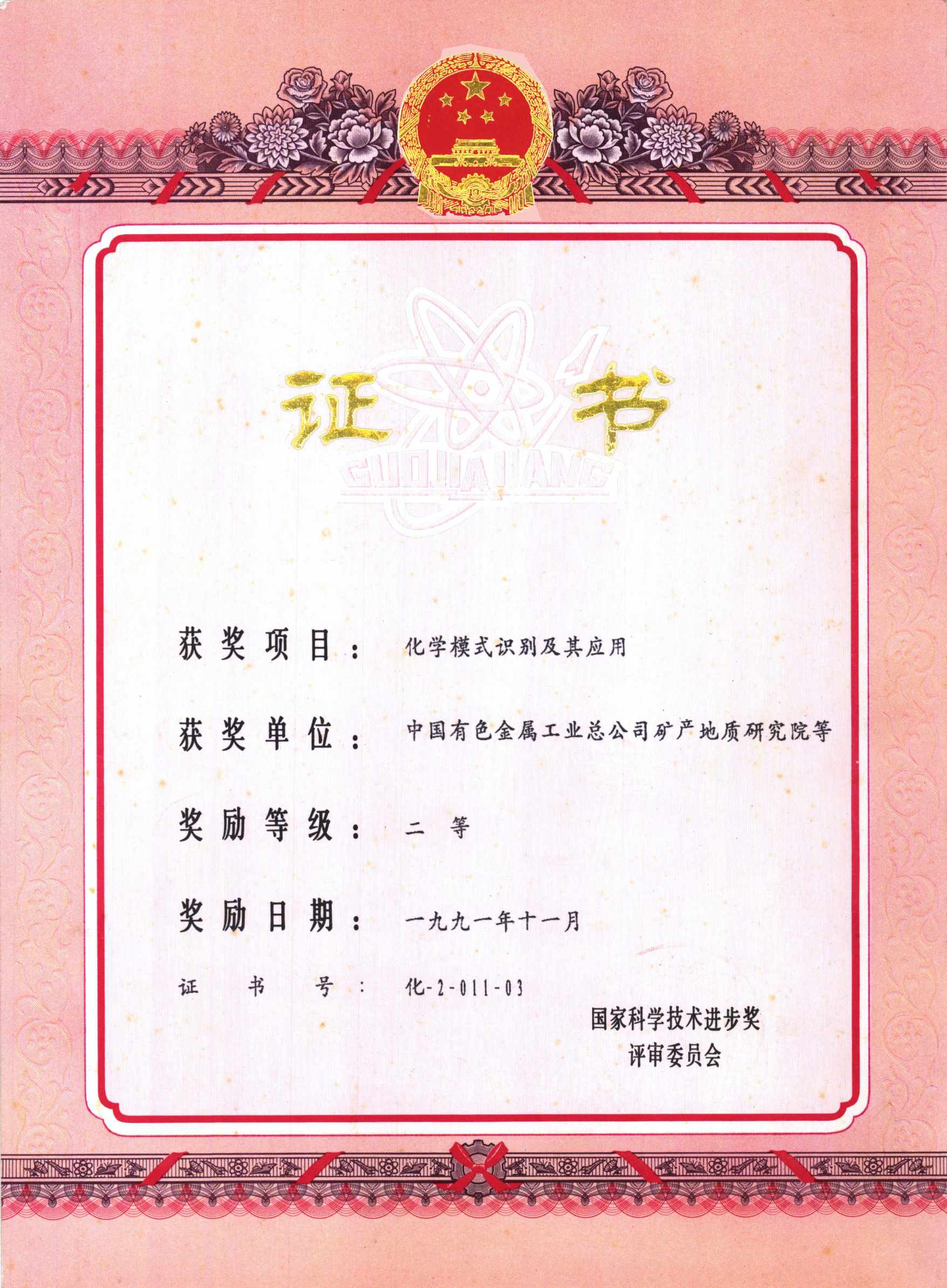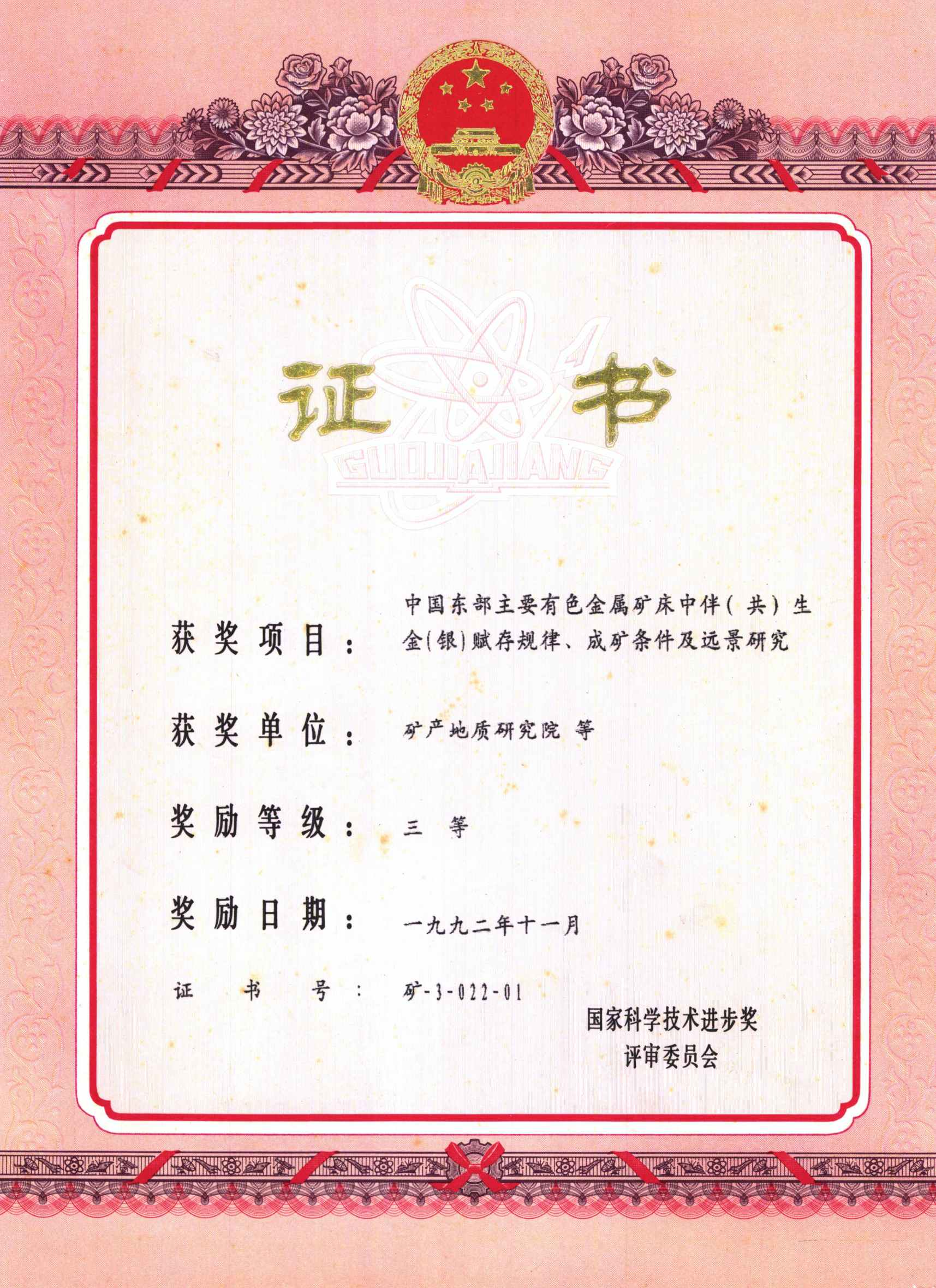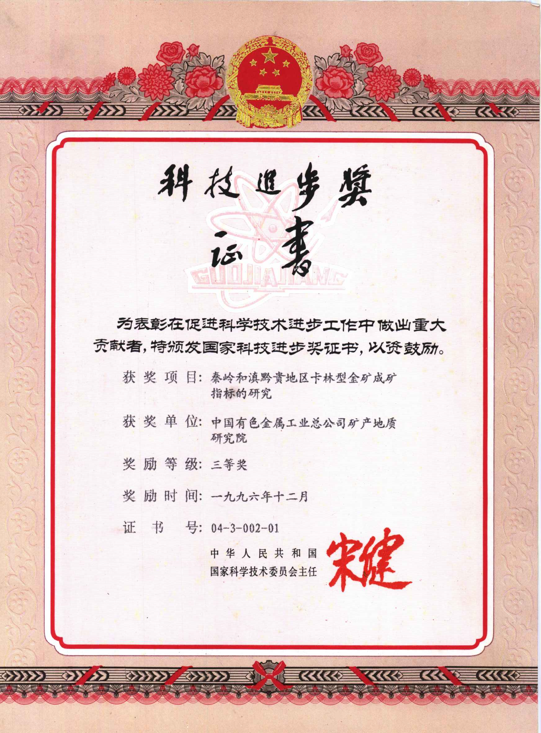 国家科技进步三等奖