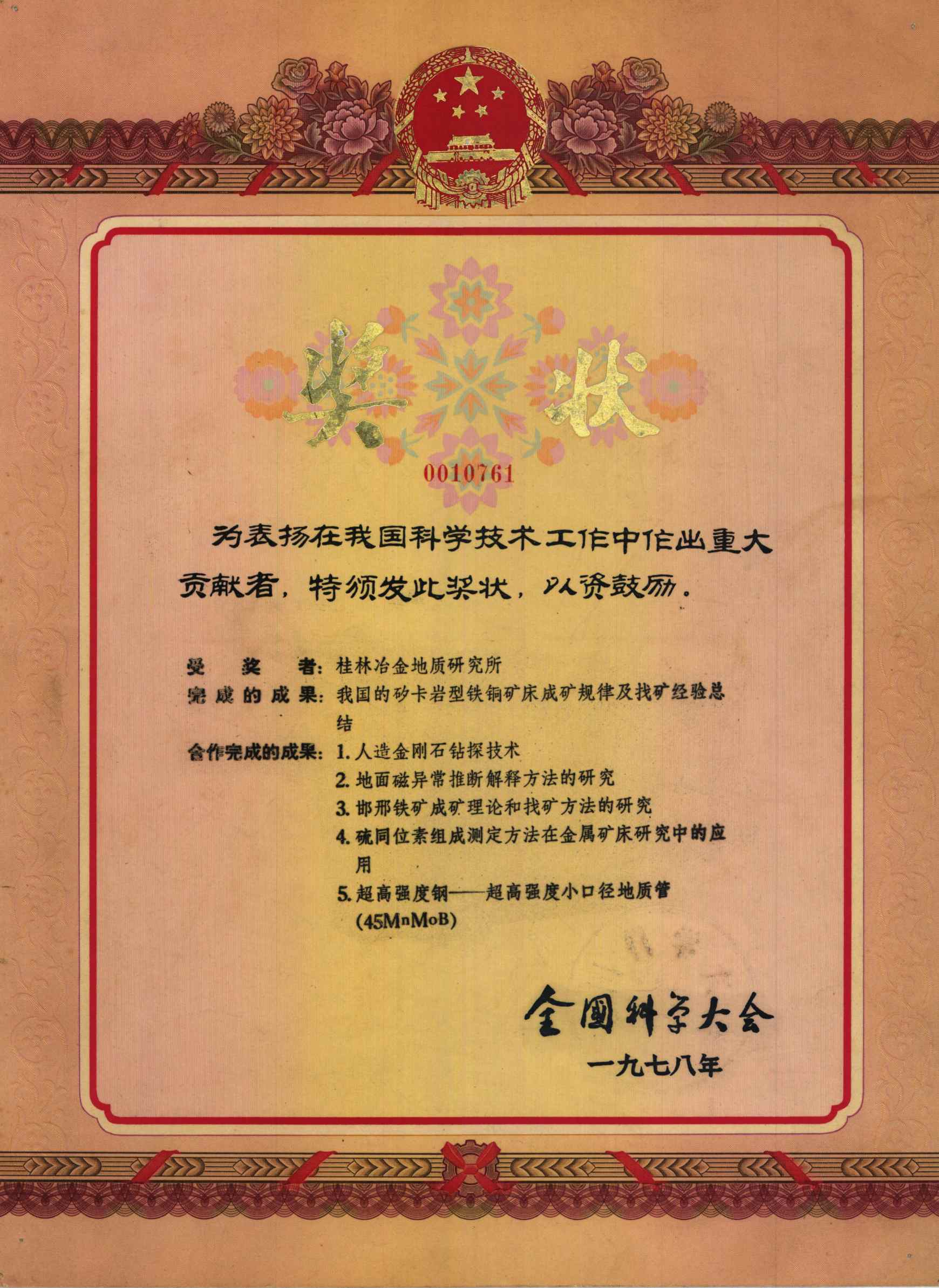 全国科学大会奖