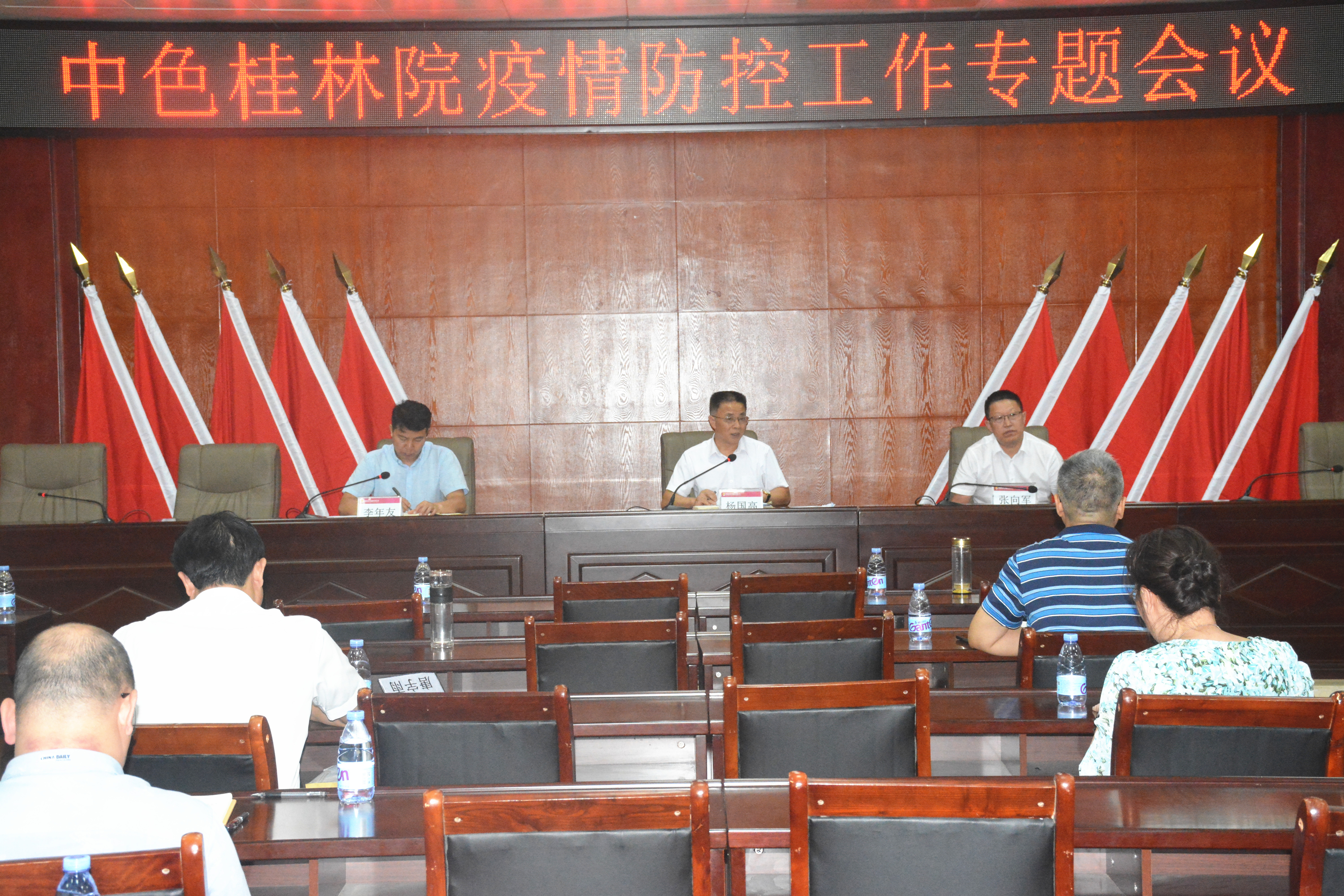公司疫情防控工作专班组长李年友组织学习和传达上级疫情防控工作有关精神和要求,并就“两节一会”期间落实落细疫情防控工作要求进行部署:一是要坚决贯彻落实近期集团公司有关疫情防控的总体要求和部署意见。要加强外防输入和人员安全有序流动管理,要加强疫情应急处置和常态化疫情防控;二是桂落实落细桂林市有关部门防控措施和意见。要合理慎重安排出行和做好个人防护,要关注自我健康状况和及时完成疫苗全程接种;三是在国庆期间公司人员要落实离返桂等管理要求。国庆期间,公司员工离返桂要做到主动报备行程信息、落实疫情防控措施,各单位(部门)要按要求向公司防疫专班报送《国庆期间离返桂(从区外及区内边境八县)人员登记表》。同时,李年友要求各单位部门)要将会议精神传达到全体干部员工,根据各单位部门)情况分层分类做好防疫措施。