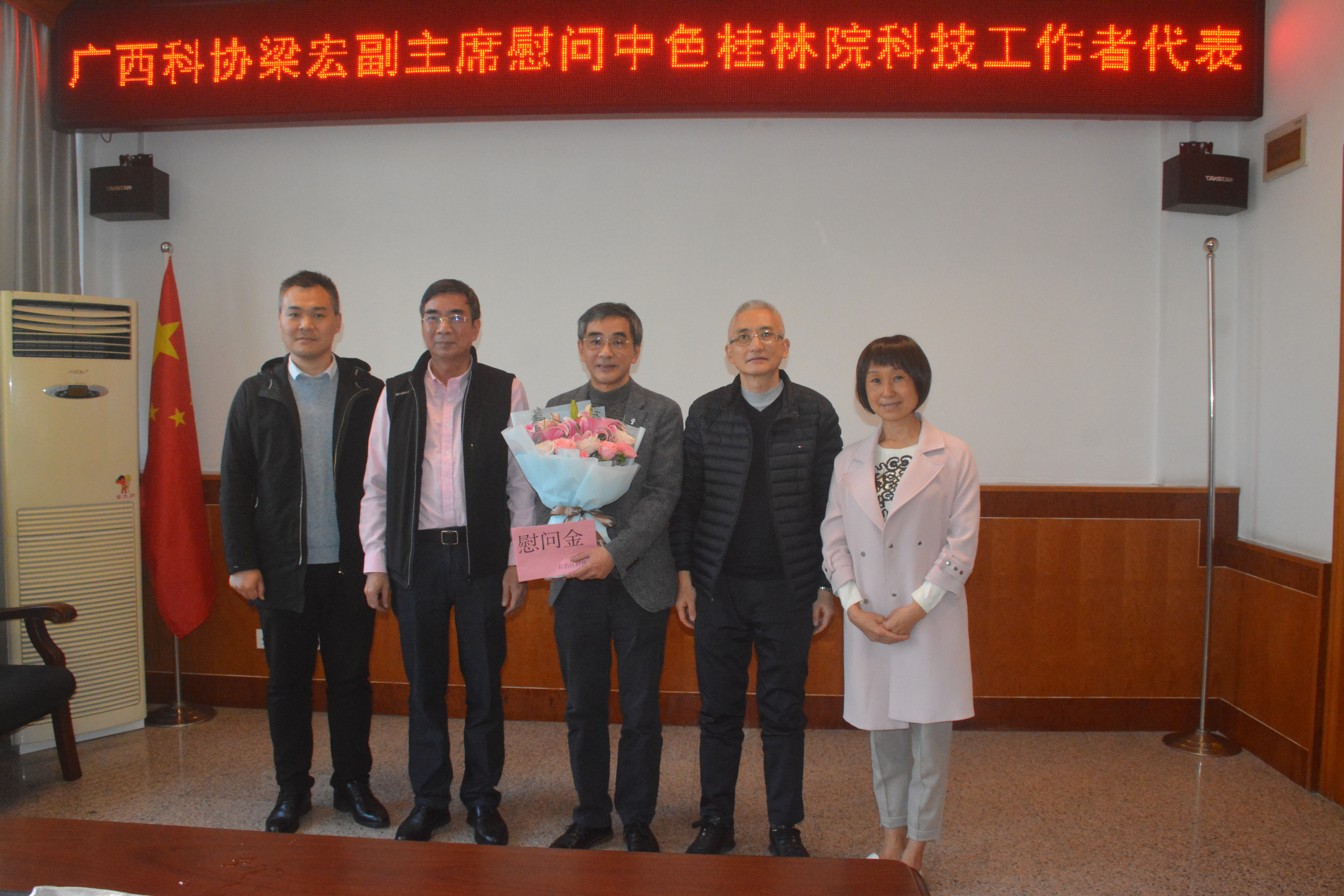 1月13日下午,在春节来临之际,广西自治区科协副主席梁宏、桂林市科协副主席彭友萍一行到betway必威走访慰问科技工作者代表-集团首席专家、百锐公司总经理张昌龙教授。公司党委书记、董事长朱景和,副总经理胡乔帆参加慰问活动。