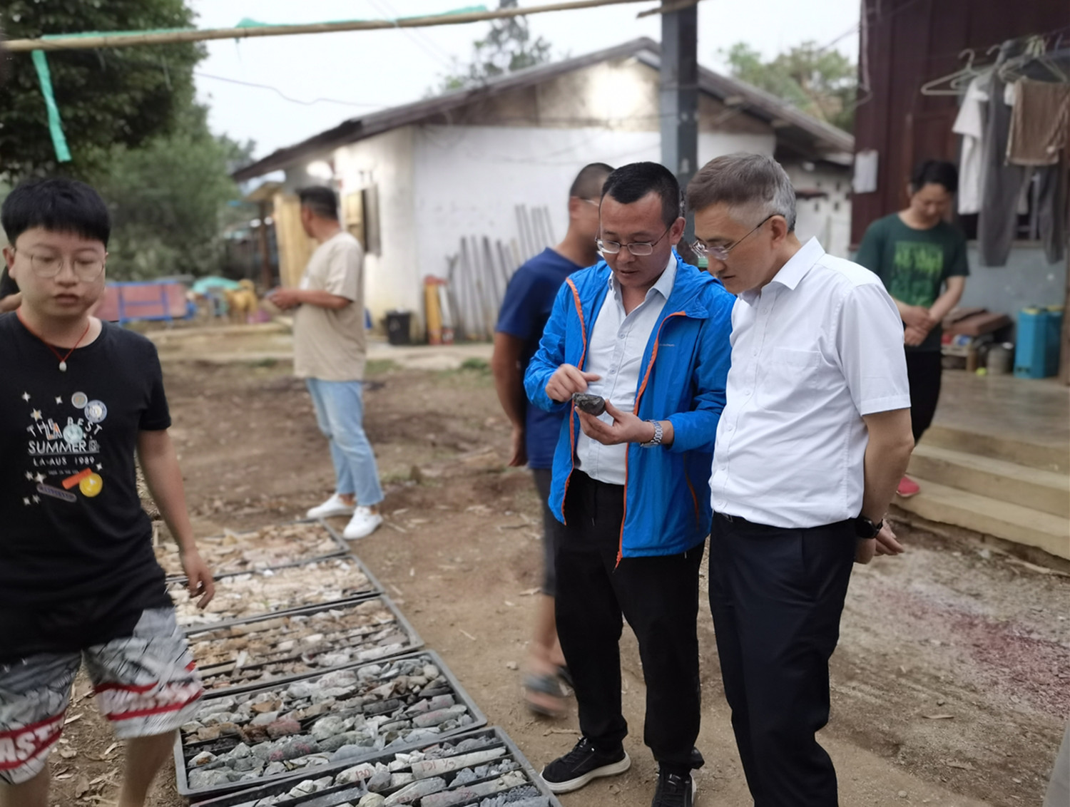 4月17日,朱景和书记一行深入施工现场指导工作,强调安全重于泰山,牢记责任意识,并详细了解了地质、物探、化探等工作原理,考察了样品加工间、岩心库等现场,提出了相关工作建议。朱景和充分肯定了项目部技术人员在空白区且矿体属于隐伏矿的情况下,通过综合分析研究及技术手段,完成找矿突破。老挝川圹项目目前已探获1中型锡多金属矿床,找矿前景可达大型规模。