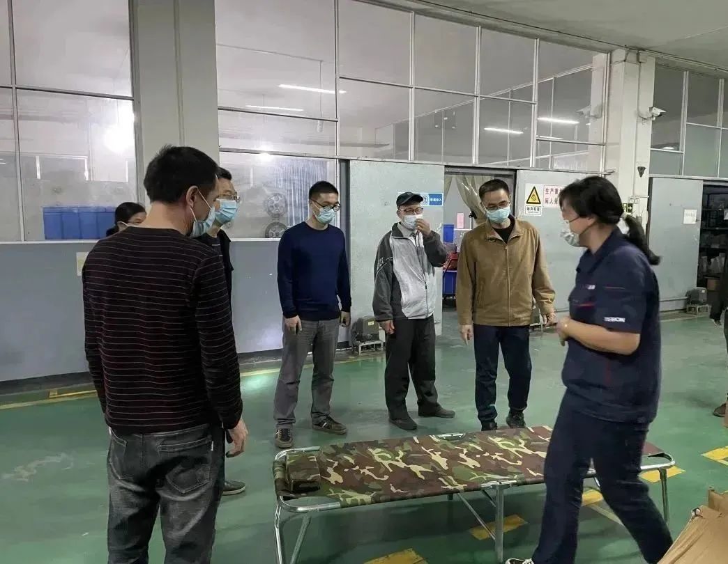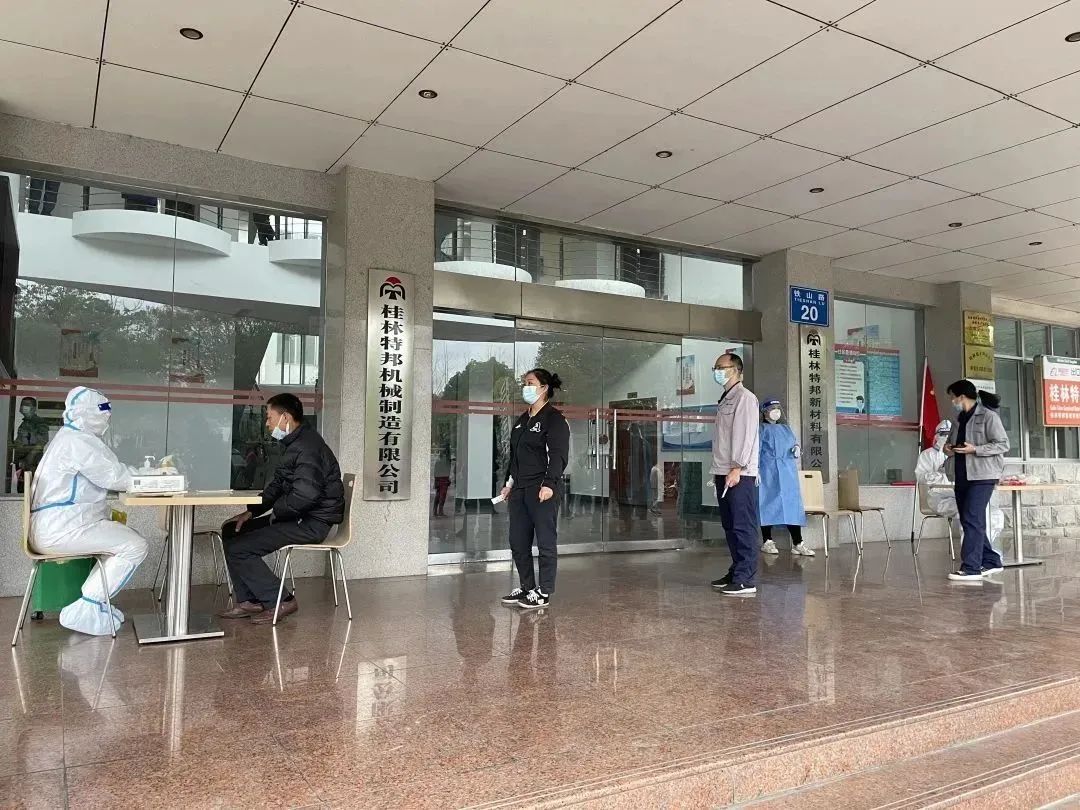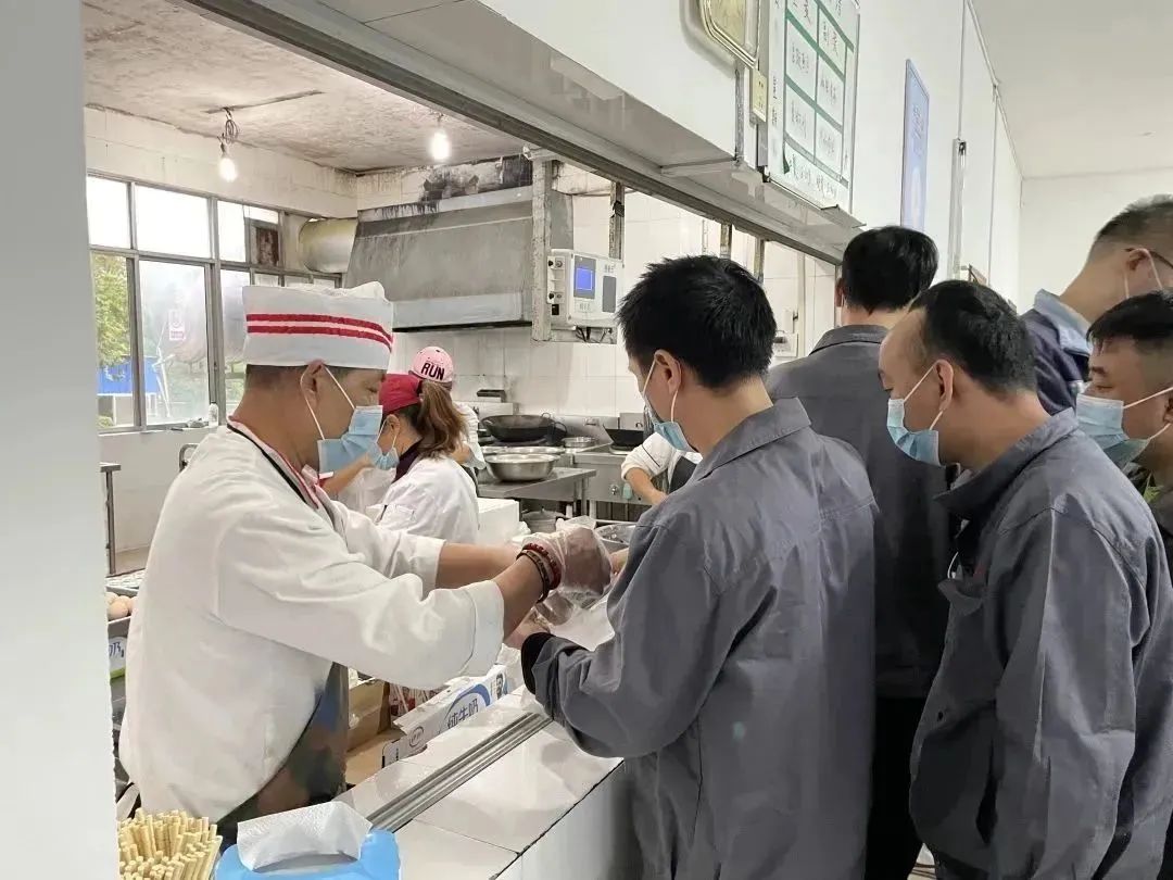 为解决员工“住宿难”问题,他们克服运输困难,想尽办法采购了200张简易行军床;为解决员工洗漱及衣物晾晒问题,增设了多台速热电热水器及多处晾晒挂绳;食堂也为员工准备了丰盛的牛奶、鸡蛋、包子等早餐,以及荤素搭配合理的午餐和晚餐,不断完善员工居住、饮食等生活条件。封闭管理期间,他们联系七星区工信局和社区防疫指挥部,在园区内部增设了核酸检测点,党员干部积极参与核酸检测志愿服务工作,配合医务人员每日为员工进行核酸检测。
